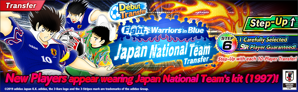 Event Period: Monday, June 3 to Monday, June 17 (UTC+9)The Japan National Team Transfer featuring new players wearing the 1997 Japan National Team's official kit is on now! As a Step-Up Transfer, players will receive bonuses, such as one guaranteed SSR, at certain steps of the 10-Transfer.
