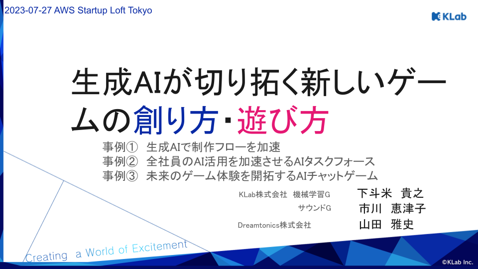 AWS Startup Loft Tokyo AIは最高のパートナー!? ゲームづくりの新しいカタチを考える「生成AIが切り拓く新しいゲームの創り方・遊び方」登壇報告