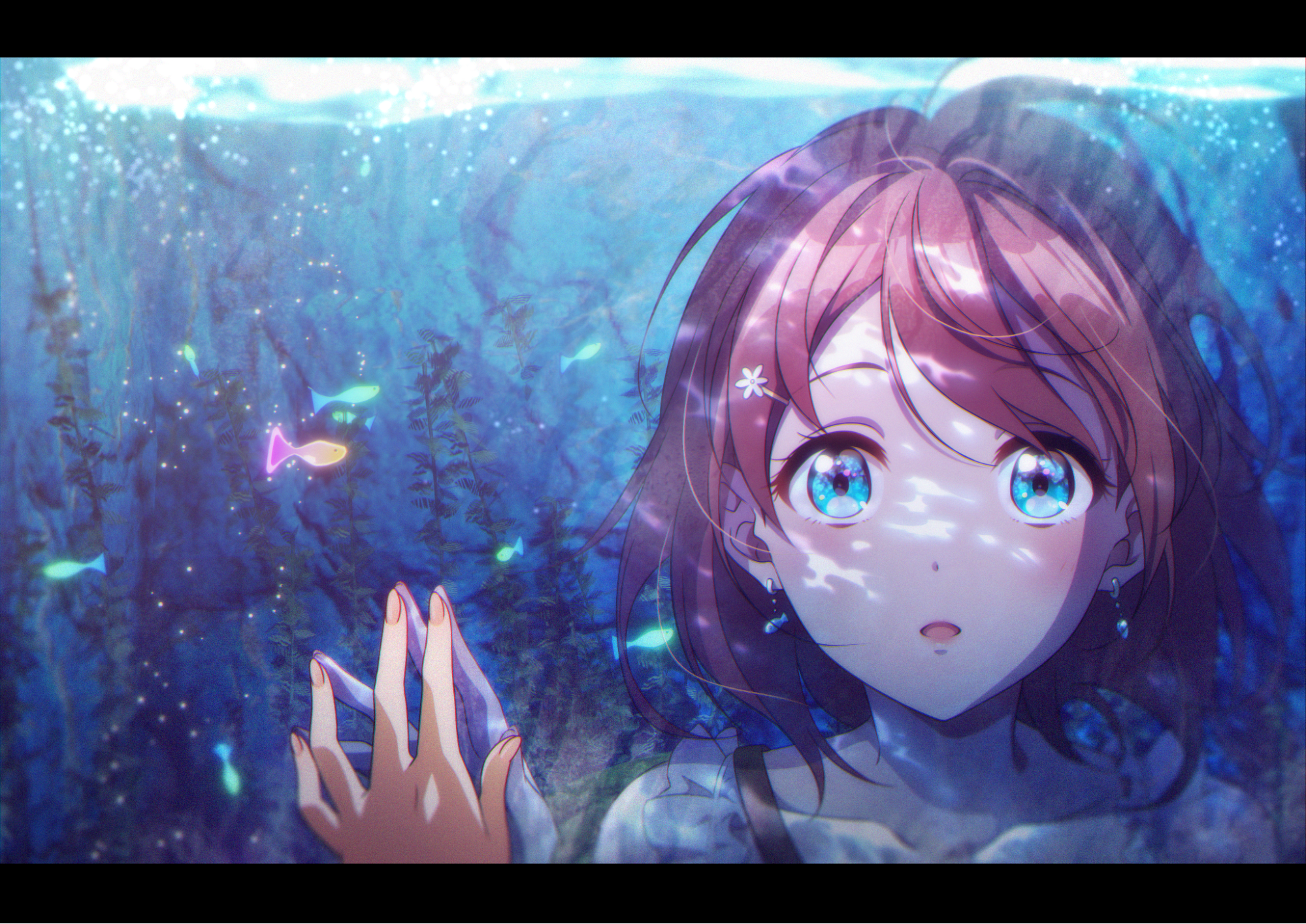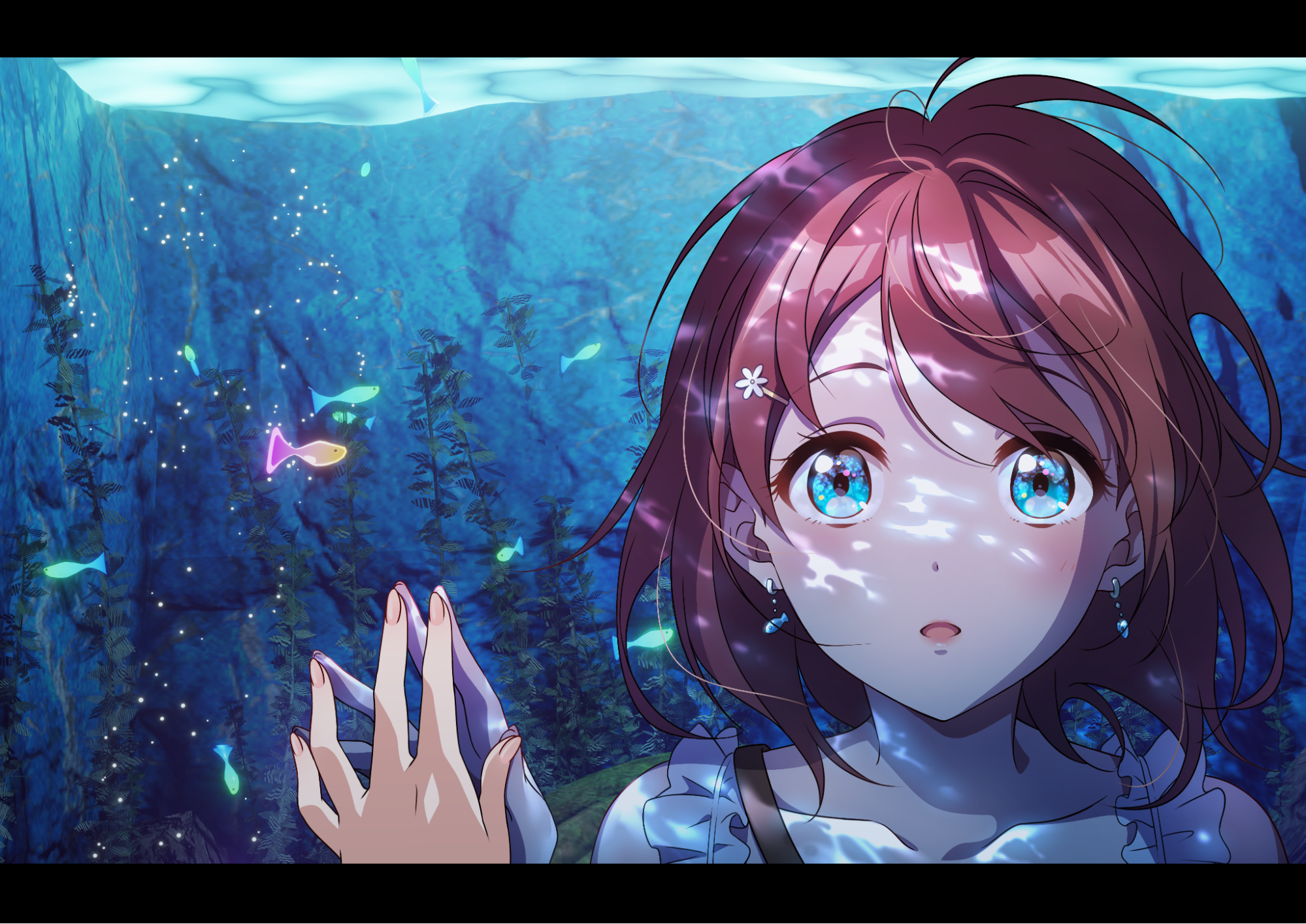 アクアリウムの中の景色に魅了され、吸い込まれてるような表情を表現したかったので、瞳の角度や口の開き具合などのディテールにこだわりを持って描いてます。