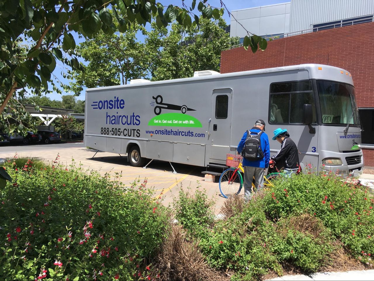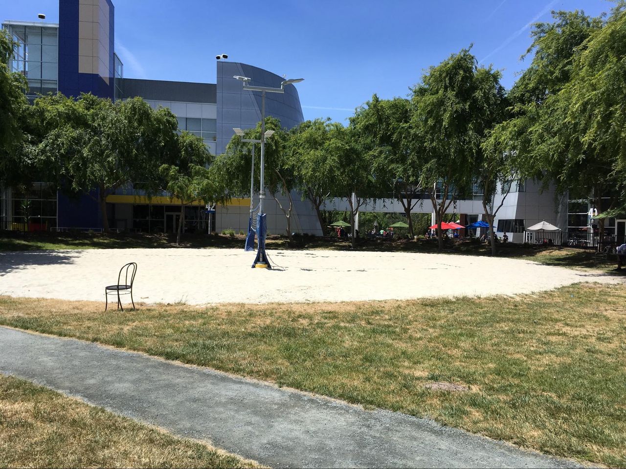 オフィスツアー中に見たものは、プールやビーチバレーコート、オフィス内ではクリーニングの手配ができたり、出張理髪店(トラック)もありました。