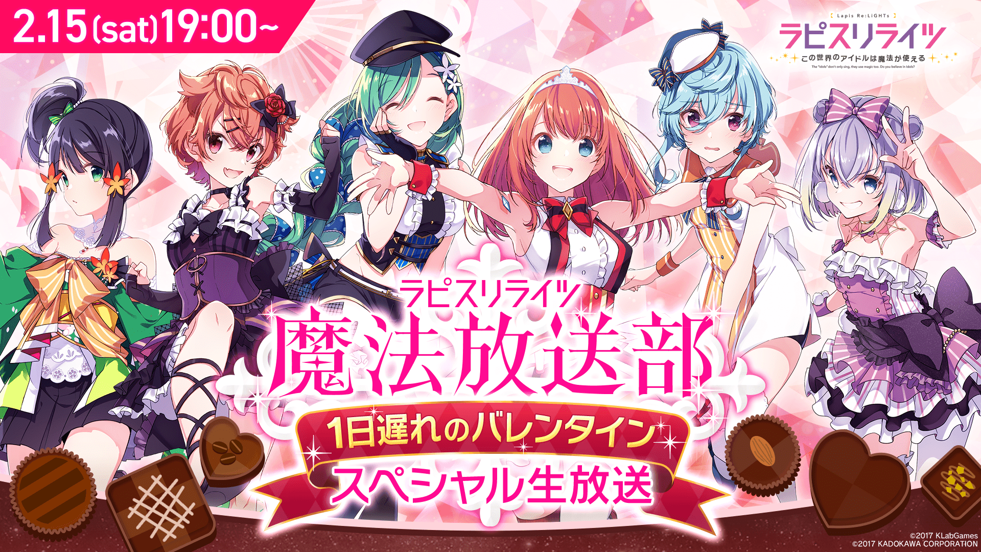 2月15日(土)19:00より「ラピスリライツ魔法放送部~1日遅れのバレンタインスペシャル生放送~」の配信をお届けいたします。
